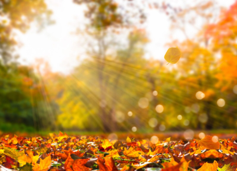 De herfstnatuur omringt mij. De wind waait door mijn haren. De bergtoppen zijn in nevelen gehuld. Honderden bladeren bedekken het pad.
